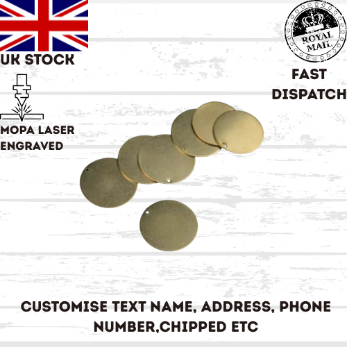 ENGRAVED PET TAGS - Personalised id dog cat tag Brass name small large identity
