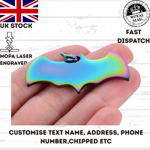 Engraved Pet Tag Halloween Fly Bat Tag Stainless Steel Collar Keychain Dog Cat