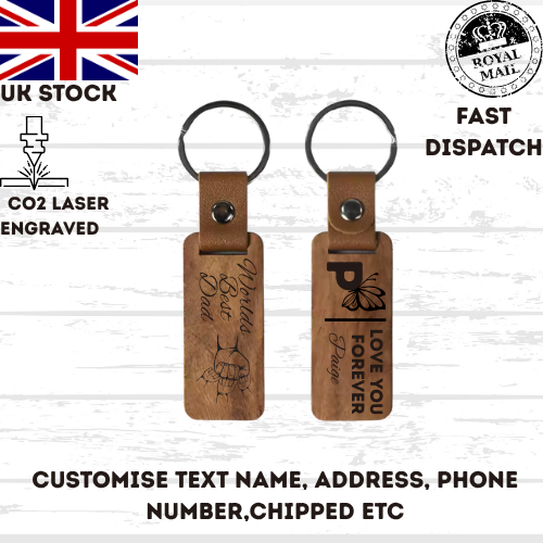 Personalised Wood Keychain Leather Custom Engraved Key Ring Gift for Him Her