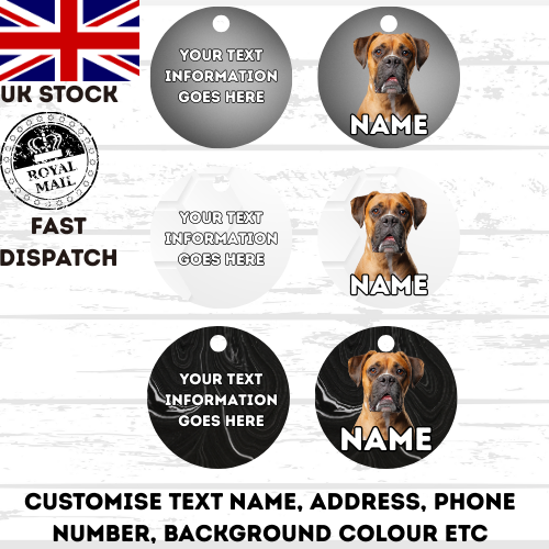 BOXER Dog Pet Personalise Own Photo Round, Bone, Military Tag